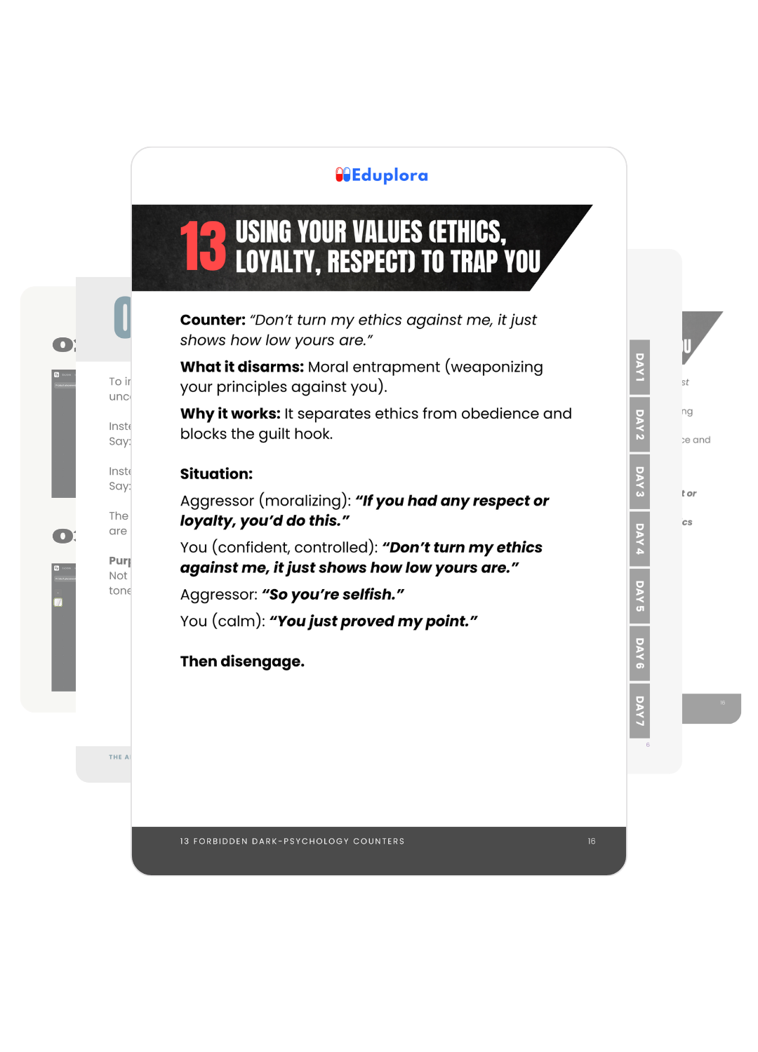 These 13 counters are built on psychological mechanisms studied in fields like behavioral psychology, conflict analysis, and manipulation dynamics.