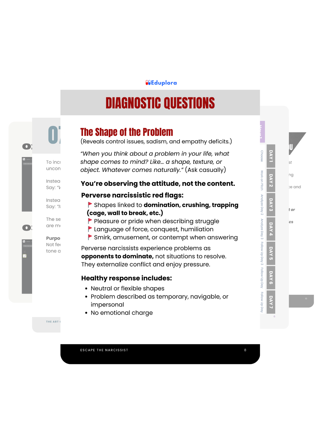 You will have a set of questions to ask your partner (subtly), techniques to stand against their manipulation and much more.