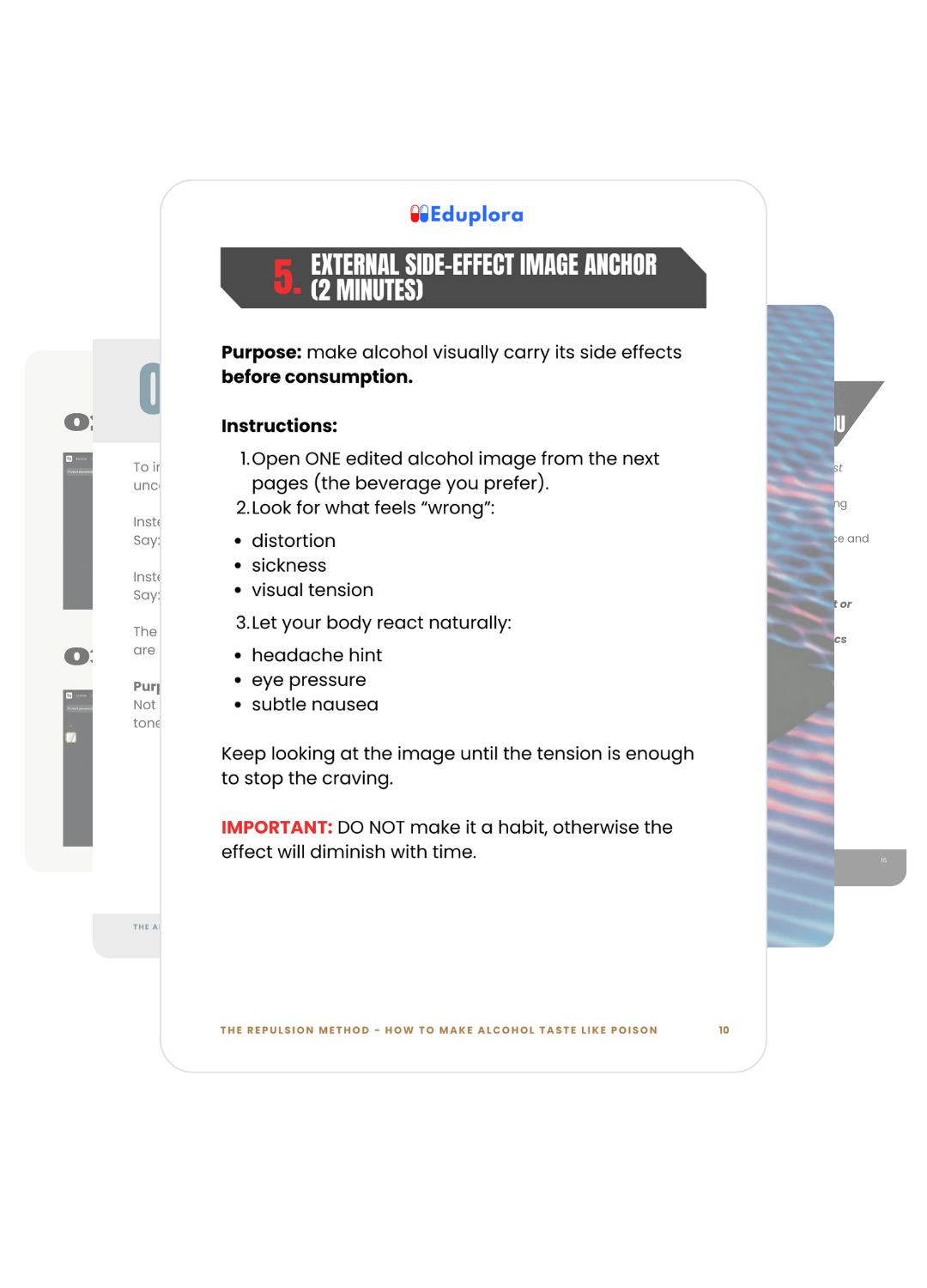 you’ll use targeted mental images, neuro “mini-games,” and trigger rewiring to turn alcohol into something your brain instinctively rejects.